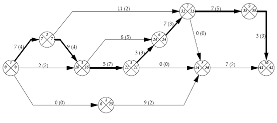 Данную сетевую модель можно оптимизировать. Для этого на критические пути увеличиваем количество рабочих, снимая их с менее загруженных участков. Таким образом, сокращаются сроки выполнения работ.