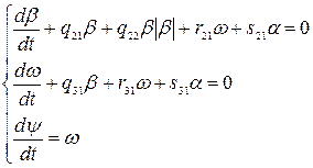 Для описания циркуляции судна примем следующие нелинейные дифференциальные уравнения: