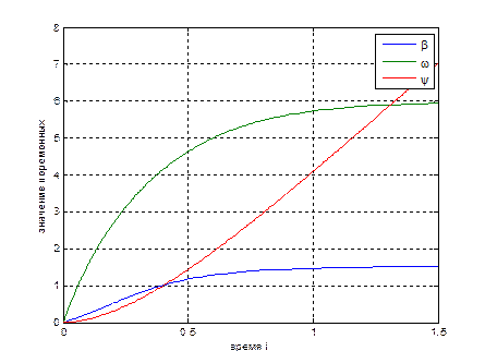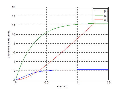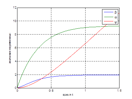 Здесь β – угол дрейфа судна, ψ – угол курса, ω – угловая скорость, α – угол кладки (перекладки) руля. Использовать следующие численные значения параметров: