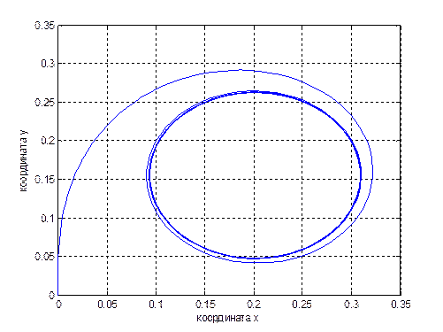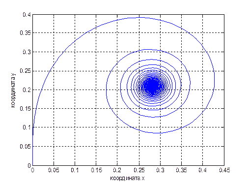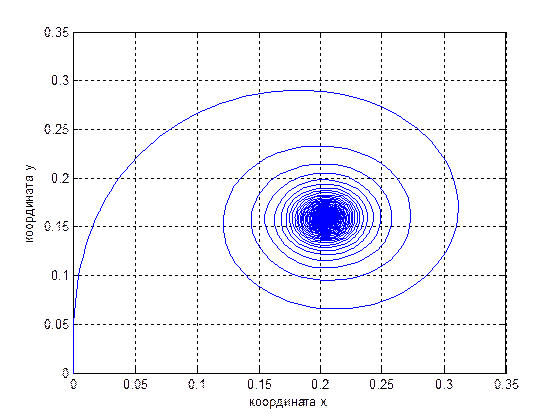 Главный вывод, который можно сделать исходя из графиков, это то, что при наличии нелинейного члена в системе движение центра масс постепенно сходится к движению по окружности. Когда нелинейного члена в системе нет, то положение центра масс постепенно сходится к некоторой точке.