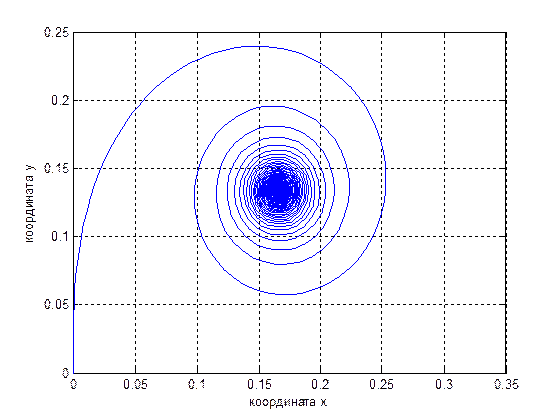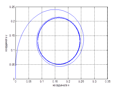 где v – относительная скорость движения судна, v = 1. Численно проинтегрировать совместную систему (I) – (II). Построить траекторию центра масс на плоскости (х, у).