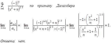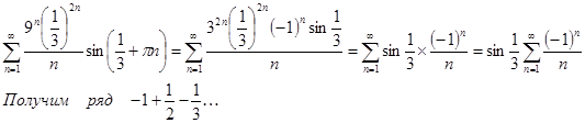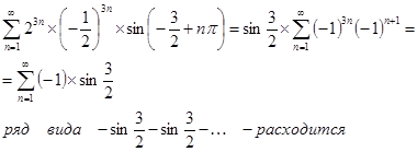 Данный ряд расходится, т.к. его сумма имеет два различных предела (колеблющийся ряд).