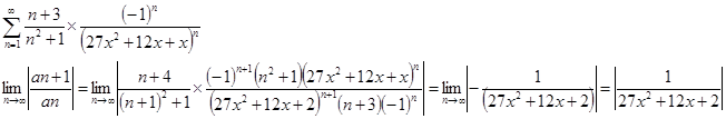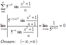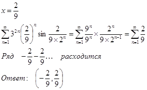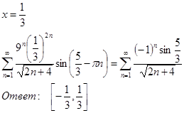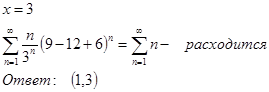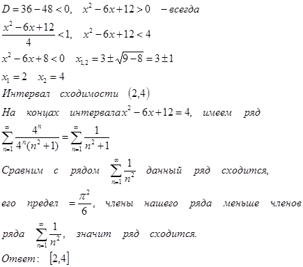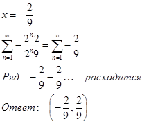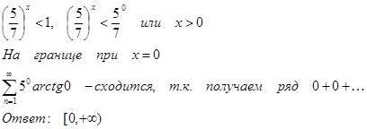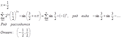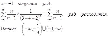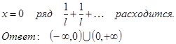 В промежутке 1<x<l ряд сходится. Объединяем интервалы и получим