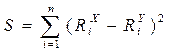 Сумма квадратов разностей рангов S вычисляется по формуле