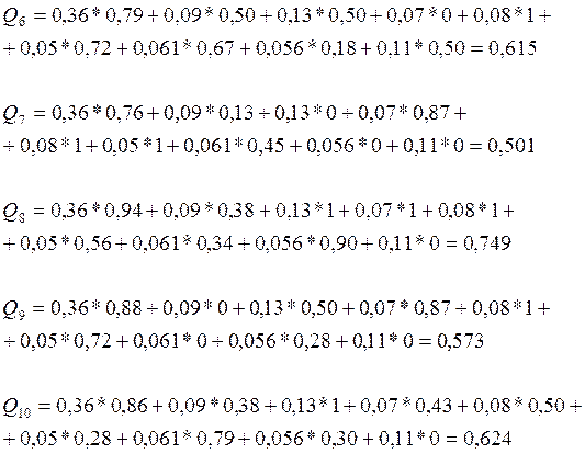 Далее по формуле (2.15) рассчитываем весовые показатели: