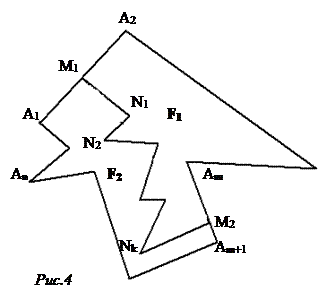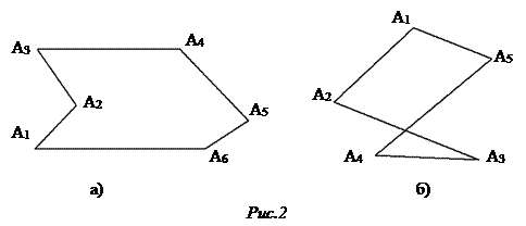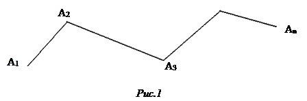 В курсе элементарной геометрии понятие многоугольника рассматривается через понятие ломаной. Ломаная - система отрезков А1 А2 ,А2 А3 ,... ,Аn-1 ,Аn , где n≥2, соединяющей точки А1 и Аn и обозначается А1 ,А2 ,...,Аn (рис. 1)