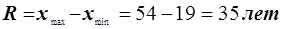 Таким образом, получаем следующие интервалы: 19-25; 25-32; 32-39; 39-46, 46-54.