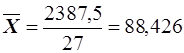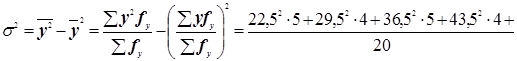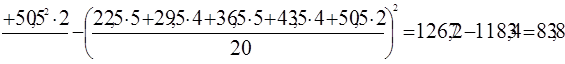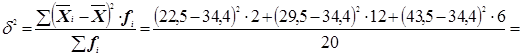 Сначала необходимо найти середины интервалов. Затем на основании имеющегося распределения определим выборочные среднюю и дисперсию.