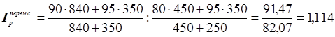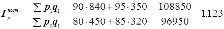Из значения индекса постоянного состава заключаем, что если бы не было структурных изменений в реализации продукции, то цена повысилась бы на 11%.