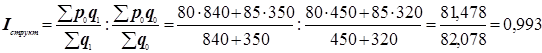 Из индекса структуры делаем вывод, что за счет структурных изменений цена снизилась на 0,7% (100-99,3).