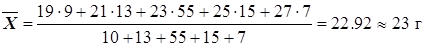 | Расход сырья, г | Изготовлено изделий, шт. | Середина интервала |