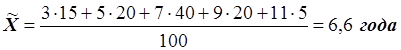 | Срок службы станков, лет | Середина интервала, лет | Число станков, шт. |
