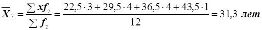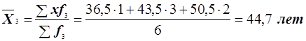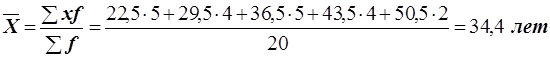 Средняя заработная плата по совокупности определялась суммированием заработной платы отдельных рабочих (графа 5 таблицы 2) и делением суммы на общее количество рабочих n =20. Аналогично определялся средний возраст рабочих по подгруппам.