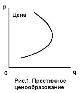 Престижные цены на новые товары используются зарубежными фирмами для поднятия престижа, как правило, высококачественного нового товара. Это, в первую очередь, касается престижных товаров и услуг личного потребления. При этом учитывается психологическое и социальное воздействие цены на определенную категорию потребителей, обычно обладающую существенным достатком. В этих случаях люди часто судят о качестве товара или услуги по уровню цены. «Дешевый» товар ассоциируется с неполноценностью ее качества, а «дорогой» товар становится синонимом его высокого качества. В некоторых слоях общества покупать «дешевый» товар вообще считается признаком плохого тона. График спроса на товар, подверженный престижному ценообразованию, существенно отличается от графика спроса на обычный товар. Престижное ценообразование характеризуется до определенного момента положительным наклоном графика спроса на товар или услугу (рис.1). С повышением цены спрос на товар до некоторого момента возрастает. По достижении некоторого момента повышение цены будет приводить к сокращению спроса.