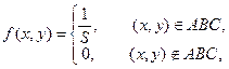 Двумерная случайная величина (X,Y) имеет равномерное распределение вероятностей в треугольной области ABC: