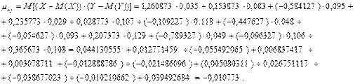 Таблица распределения вероятностей случайной величины [X-M(X)][Y-M(Y)]: