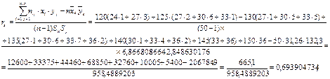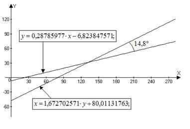 - по величине угла между прямыми регрессии сделать заключение о величине связи между X и Y.