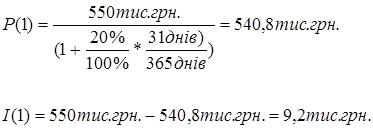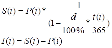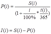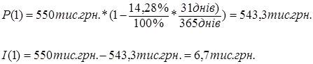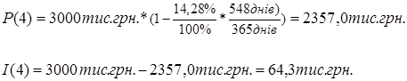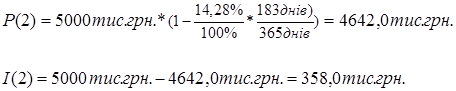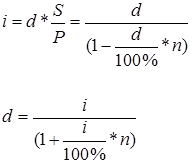 Відповідно з формулами (3.2), (3.3) ставка дисконту d, еквівалентна відсотковій ставці і, розраховується по формулам: