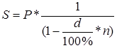 де D – сумма дисконта, як різниця між сумою позики Р та нарощеної суми загального позикового боргу Sна момент погашення позики.