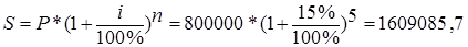 1.Розраховуємо суму накопиченого боргу S для постійних складних відсотків, заданих в якості річної відсоткової ставки та для строку позички в цілих роках. Повернення позички та нарахованих відсотків – після закінчення строку кредитного договору.