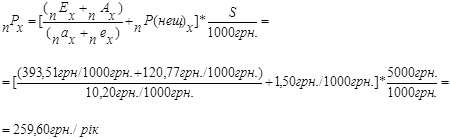 (дожиття, смерть, нещасний випадок) виконується за формулою (вихідні дані надані в задачі в розрахунку на 1000 грн. страхової суми):