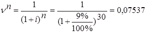 Знайти розмір премії при страхуванні на дожиття до 30 років новорожденому хлопчику. Ставка і = 9%, страхова сума = 100000 грн.
