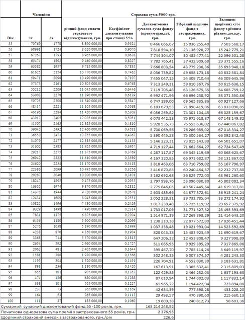 4. Як показують результати розрахунків, змінного щорічного фонду достатньо для виплати страхової суми до 100 років.
