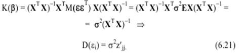 Невыполнимость данной предпосылки называется гетероскедастичностью (непосто-янством дисперсий отклонений). Поскольку D(εi) = M(εi − M(εi))2 = M(еi2) , то данную предпосылку можно переписать в форме: M(еi2)= σ2. Причины невыполнимости данной предпосылки и проблемы, свяанные с этим, подробно рассматриваются в главе 8.