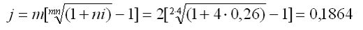 Пример. Рассмотрим предыдущую задачу, изменив условия: проценты начисляются поквартально.