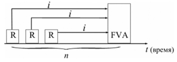 | Рис. 8. Логика финансовой операции определения современной величины потока платежей |