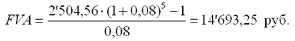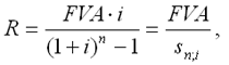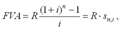 а) наращенная сумма. Если сумма долга определена на какой-либо момент в будущем (FVA), тогда величину последующих взносов в течение n лет при начислении на них процентов по ставке i можно определить по формуле: