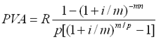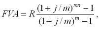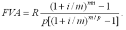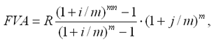 · срочная рента с неоднократным начислением процентов в течение года, при условии, что число выплат не равно числе начислений, т.е. p ≠ m :