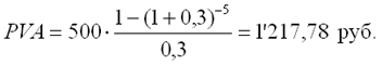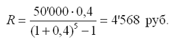 Пример. Для покупки автомобиля через 5 лет потребуется 50 тыс. руб. Определите размер ежегодных взносов, вносимых в конце каждого года в банк, который начисляет проценты по ставке 40%.