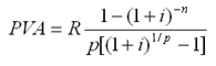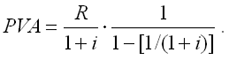 Приведенная стоимость бессрочного аннуитета пренумерандо в общем виде определяется из приведенной стоимости бессрочного аннуитета постнумерандо, скорректированного на коэффициент (1 + i), т.е. отличается на величину первого платежа.