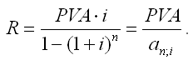 Дробь в формуле – коэффициент приведения ренты (an;i ), значения которого табулированы для широкого круга значений, поскольку зависят от ставки процентов (i) и от числа лет (n) (Приложение 5).