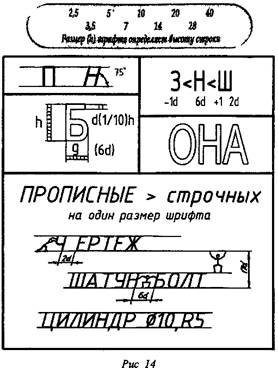 Размер шрифта (h) - величина, определеннаявысотой прописных букв в миллиметрах (рис. 15).