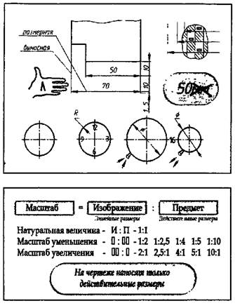 Основанием для суждения о величине изображаемого на чертеже предмета и его элементов служат размерные числа.