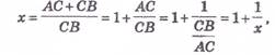 Обозначу отношение через х, учитывая, что АВ = АС + СВ, его можно записать в следующем виде: