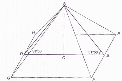 Указанному значению угла отвечает тангенс, равный 1,27306. Эта величина соответствует отношению высоты пирамиды АС к половине ее основания СВ, то есть