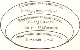 Таким образом, из рассмотренных зависимостей наиболее общей выступает статистическая зависимость. Каждая корреляционная зависимость является статистической, но не каждая статистическая зависимость является корреляционной. Функциональная зависимость представляет частный случай корреляционной.