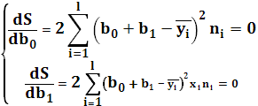 Отвлечемся на время от рассматриваемого примера и найдем формулы расчета неизвестных параметров уравнения линейной регрессии.