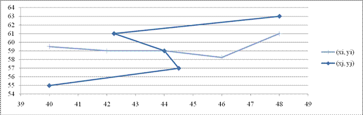 и поместим в последнюю строку корреляционной таблицы и изобразим графически в виде ломаной. По виду ломанной можно определить наличие линейной корреляционной зависимости Y по X между двумя рассматриваемыми переменными. Поэтому уравнение регрессии будем искать в виде: