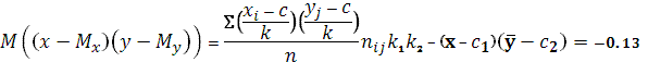 Считаем коэффициент ковариации для переменных X и Y для этого составляем таблицу: