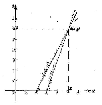 а) геометрический метод (Рис.1 ) показал, что координаты точки А пересечения этих прямых: «5»-абсцисса, «6»- ордината, т.е. АЕ=5, АД=6.