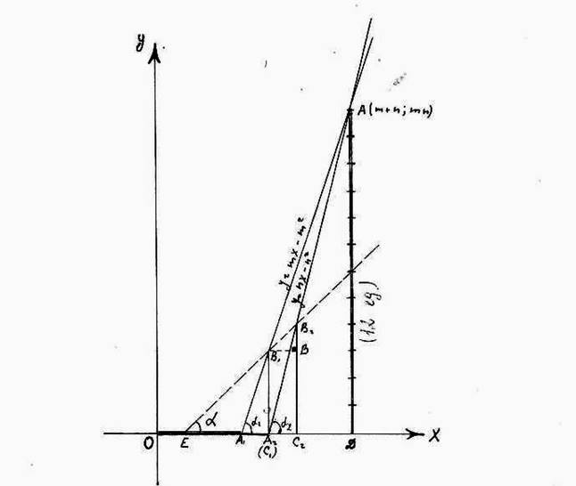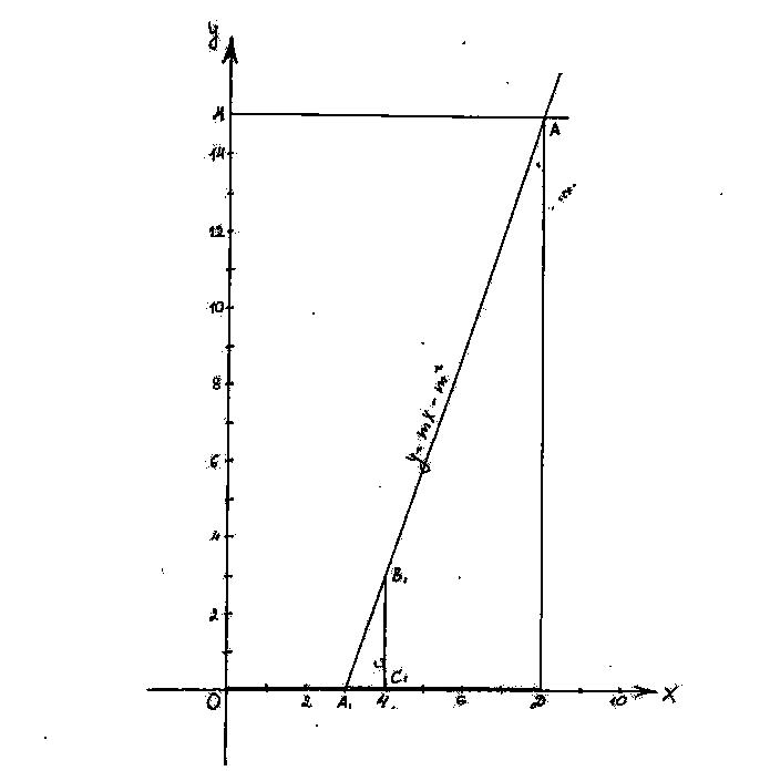 1.Уравнение прямой А1 В1 действительно У=mx-m2 , при У=0 имеем 0=mx-m2 =>x=m=OA1, т а угловой коэффициент - tg<B1 A1 C1 =B1 C1 /А1 С1 =m/1ед.=m.