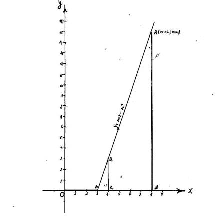 1. Если продлить прямые y=mx-m2 иy=nx-n2 (n>m>0) до пересечения с осью ОУ, то можно получить отрезки, равные m2 , n2 , n2 - m2 (Рис.8) , где ОК=m2 , ОМ= n2 , КМ=n2 - m2 .