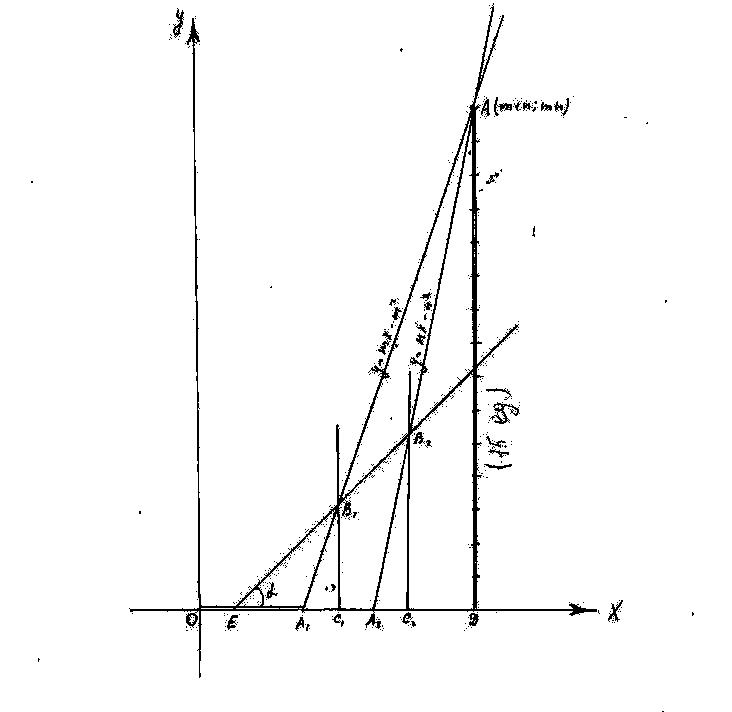 10.Проводим прямую А2 В2 , уравнение которой У=nx-n2 , до пересечения с прямой А1 В1 в точке А.