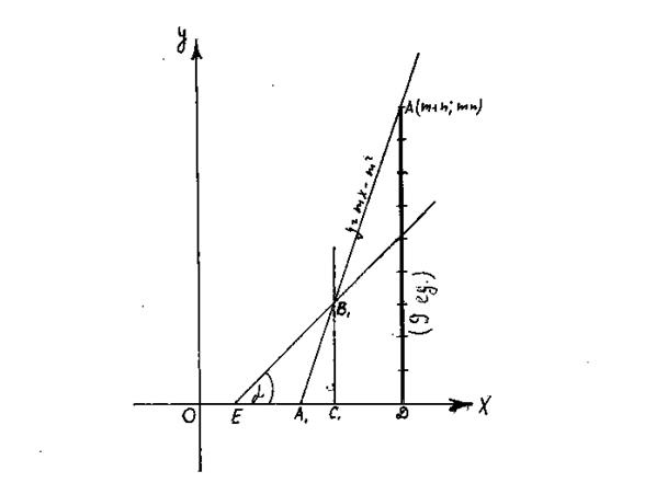 8.Восстановим перпендикуляр в точке D до пересечения его в точке А с прямой А1 В1 , уравнение которой У=mx-m2 .