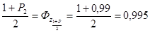 , где Z– коэффициент по заданной доверительной вероятности Р=0,99 ; Z =2,58