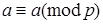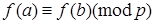 Определение : Целые числа а и b называются сравнимыми по модулю р , если остатки от деления этих чисел на р равны.